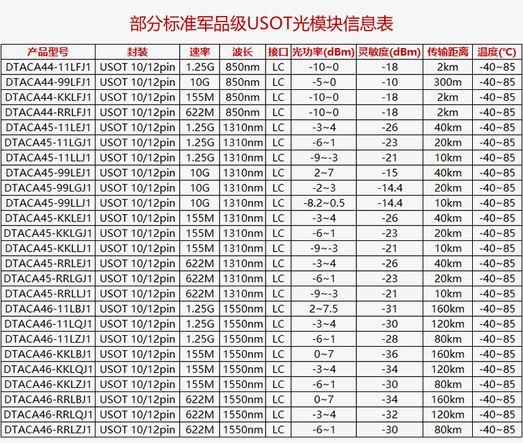 标准军品级USOT光模块